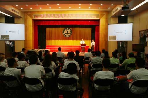 在成果展示阶段,学员们通过8个节目完美展示了他们三周来的学习成果。外国学生的中文歌曲演唱、太极拳表演、现场剪纸等节目,我校学生演唱的《北京欢迎你》,我校学生与外国学生合演的《新贵妃醉酒》等节目赢得了在场所有师生的喝彩,我校李树臣老师还向每位学员赠送了刻有他们中文名字的印章。
