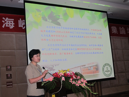 王慧敏在发言中,向海峡两岸与会代表介绍了北京都市型现代农业的形成过程、基本功能、实现形式和目前发展现状;重点阐述了我校在过去10年积极开展北京都市型现代农业发展重大理论与实践问题研究,为政府决策提供了的有力支撑。在此基础上,学校努力打造了较为完善的都市型现代农业高等教育体系、科技创新体系和推广服务体系,为北京都市型现代农业的发展提供了坚实的理论与实践支持。会后,王慧敏还与台湾及内地部分高校校长围绕农林高校的办学定位、特色发展、国际化趋势以及推广体系建设等问题进行了深入交流。