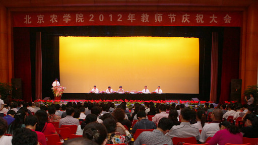 大会上,高喜军宣读了《北京农学院2012年教师节大会表彰决定》,表彰了北京市高等学校教学名师获得者,北京市师德先进个人获得者,2010-2012年度“三育人”先进集体、“三育人”标兵和“三育人”先进工作者,在教育系统工作满三十年的教师(2011、2012年)和2009-2012年度教育教学成果奖获得者。北京高校教学名师邓蓉,北京市师德先进个人何忠伟、刘凤华,生物技术学院实验教学中心等5 个“三育人”先进集体,刘正坪、马晓燕等7名“三育人”标兵,王燕、成军等37名“三育人”先进工作者,陈学珍、孙淑玲等29名从事教育工作满三十年的教师,《北京都市型现代农业人才培养的研究与实践》等61项教育教学成果受到表彰,学校领导为获奖集体及个人代表颁奖。