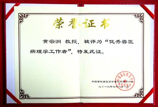 日前,在中国畜牧兽医学会兽医病理分会年会上,我校退休教授黄宗洲被授予“优秀兽医病理学工作者”称号。