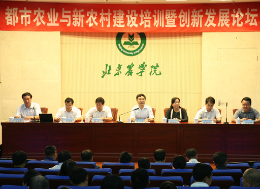 日前,由北京农学院、北京新农村建设研究基地、农业部现代农业技术培训基地联合举办的“全国都市农业与新农村建设培训暨创新发展论坛”在我校召开。北京市农业局副局长郑渝,农业部农村社会事业中心新农村建设处处长陈艳清,北京市村工作委员会产业发展处处长涂宏汉,校党委书记郑文堂,校长助理范双喜,农业部现代农业技术培训基地副主任、我校科学技术处副处长蒋林树等领导出席开幕式并参加了学术会。学术会由我校都市农业研究所所长史亚军主持。