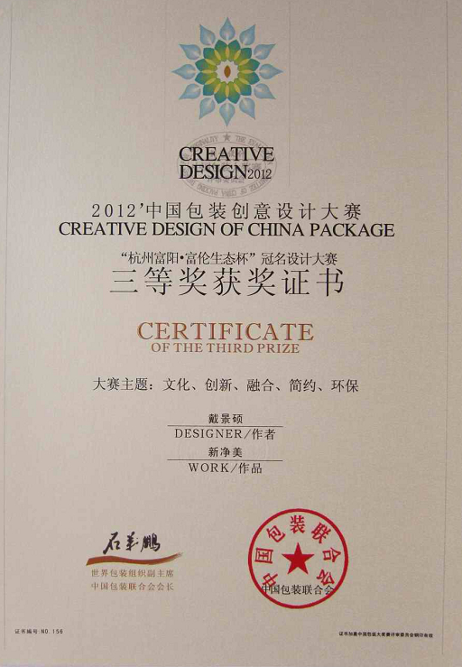 据悉,中国包装创意设计大赛由中国包装联合会主办、世界包装组织支持,由《中国包装》杂志社、《包装世界》杂志社、《CHIPF包装博览》杂志等承办,是包装行业的最高赛事之一。今年大赛在北京中国国际展览中心举行,共收到作品4000多件,参赛对象包括各包装工程院校、美术设计院校、包装企业及日、韩、英、法、德等国部分院校师生,参加院校有300多所。经过几轮评议,在大赛评审委员会专家组认真、公平、公开、公正的评审下,最终确定金奖10名、一等奖50名 、二等奖100名、三等奖150名。