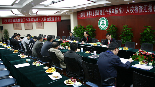 在检查组反馈会上,干部安稳统群组、组织组、宣教组分别对检查情况进行了反馈。市委教育工委副书记唐立军代表检查组对我校落实《党建和思想政治工作基本标准》的情况以及学校近年来事业发展取得的成绩给予了充分肯定,同时提出了下一步的努力方向。他指出,近年来学校党委高度重视党建和思想政治工作,认真落实《党建和思想政治工作基本标准》,各项工作务实开展,党建和思想政治工作的针对性和实效性有了显著提升,特别是学校着眼于首都城乡一体化的需求,能够准确把握学校的发展定位和思路,突出都市型现代农业人才的培养,推进都市型现代农业技术的创新、推广与成果的转化,主动服务首都城乡一体化建设,注重产学研用的合作,在科研、人才培养等方面都取得了突出成绩,特别是学校创新性开展的学校100个基层党支部与京郊各区县100个村党支部结对共建的“双百对接”活动,得到了专家组一致给予充分肯定,希望学校能够以此次《基本标准》检查作为推进党建和思想政治工作的一个重要契机,进一步推动学校科学发展。