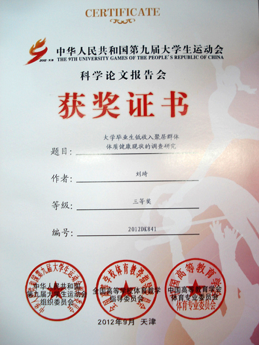 日前,由国家教育部、体育总局、共青团中央举办,天津市人民政府承办的全国第九届大学生运动会在天津市落下帷幕。在本届运功会上,我校体育教学部教师刘琦代表北京市参加了教师组的教学、科学研究竞赛并荣获三等奖。