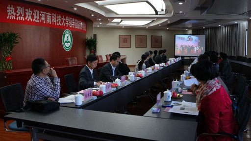 座谈会上,我校学生处处长韩宝平介绍了我校的发展历史、学科及专业设置、办学特色等基本情况。代表团团长、河南科技大学学工部部长杨国欣对学校的热情欢迎深表感谢,对我校在人才培养、科学研究、社会服务和文化传承等方面工作取得的成绩给予了高度评价,并表达了与我校开展深层次合作的良好愿望。他重点介绍了河南科技大学的规划建设和学生工作情况。双方就学生工作的经验和特色展开了交流。