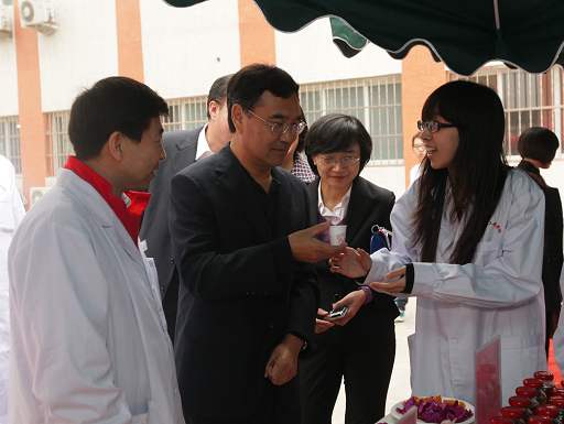 开幕式结束后,党委书记郑文堂,校长王慧敏,副校长杜晓林,校长助理、食品科学与工程学院院长范双喜,北京红叶葡萄酒有限公司董事长李书斌,北京出入境检验检疫局检验检疫技术中心主任周琦,我校相关职能部门负责人等先后来到食品楼,参观了本次食品节展出的食品包装设计作品、赭曲霉毒素的快速检测方法演示,并品尝了食品科学与工程学院学生制作的20余种食品、饮料等。