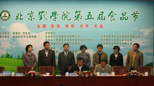 北京红叶葡萄酒有限公司董事长李书斌,北京出入境检验检疫局检验检疫技术中心主任周琦分别代表校外人才培养基地发言。他们对食品科学与工程学院老师在企业的服务贡献和优秀毕业生在单位的表现表示赞许,希望与北京农学院和食品科学与工程学院进行长期合作,共同培养食品行业优秀人才。