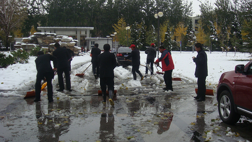学校后勤集团、科技产业集团、城乡发展学院等相关单位迅速组织300余名工作人员来到学校的各条道路,全力铲除积雪、清理断枝和倒伏的树木,经过10个小时的紧张工作,完成了全校积雪铲除和树木清理工作,确保了本周一全校各项工作正常运行。