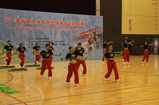 11月25日,“2012年首都大学生阳光体育体能挑战赛”在北京工商大学隆重举行,我校健美操队派出两支队伍参加比赛,最终在19支参赛队伍中脱颖而出,分别以第一名和第二名的成绩荣获两个一等奖。此项比赛自2009年以来共举行四届,我校健美操队在四届比赛中都以第一名的成绩获得一等奖,实现了“首都大学生阳光体育体能挑战赛”四连冠!