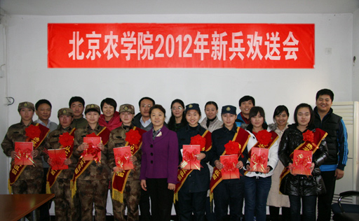 12月24日下午,我校武装部举行了应征入伍女兵欢送会。党委副书记高东出席欢送会并讲话,动物科学技术学院、园林学院、计算机与信息工程学院、城乡发展学院、经济管理学院负责人和武装部工作人员参加了欢送会。会议由武装部副部长刘柳主持。