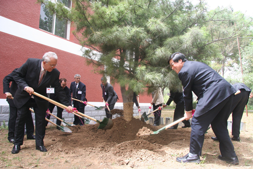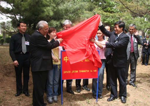 5月17日,中塔友谊松树栽种仪式在我校举行。出席上海合作组织峰会的塔吉克斯坦共和国外交部长塔· 纳扎罗夫院士、塔吉克斯坦共和国驻华大使拉· 阿利莫夫、塔国外交部亚非司长纳·纳扎罗夫、塔国驻华大使馆公使衔参赞胡· 霍利克纳扎罗夫等外宾参加了活动。