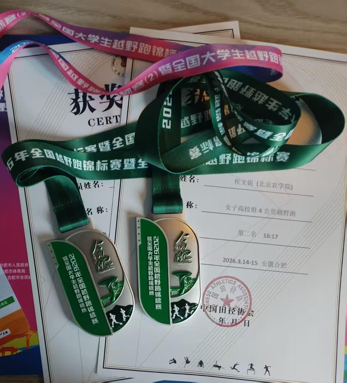 在为期两天的激烈角逐中,侯文锐奋勇争先、顽强拼搏,不断挑战自我、超越自我,最终斩获两项亚军,展现了出色的竞技状态与昂扬的精神风貌。作为主攻1500米和5000米中长跑项目的运动员,侯文锐针对本次越野跑比赛进行了系统而科学的备战。她通过间歇跑、节奏跑与长距离拉练等多样化训练方式,持续提升自身竞技能力,并针对赛道特点,重点强化核心力量与下肢肌群,以更好应对起伏路段与冲刺阶段的挑战。侯文锐表示:“此次在全国赛事中取得好成绩,离不开学校的培养和体育教学部各位老师的关怀和指导。今年首都高校第64届学生田径运动会将在我校举办,我将刻苦训练、积极备赛,力争再创佳绩,为学校增光添彩。”