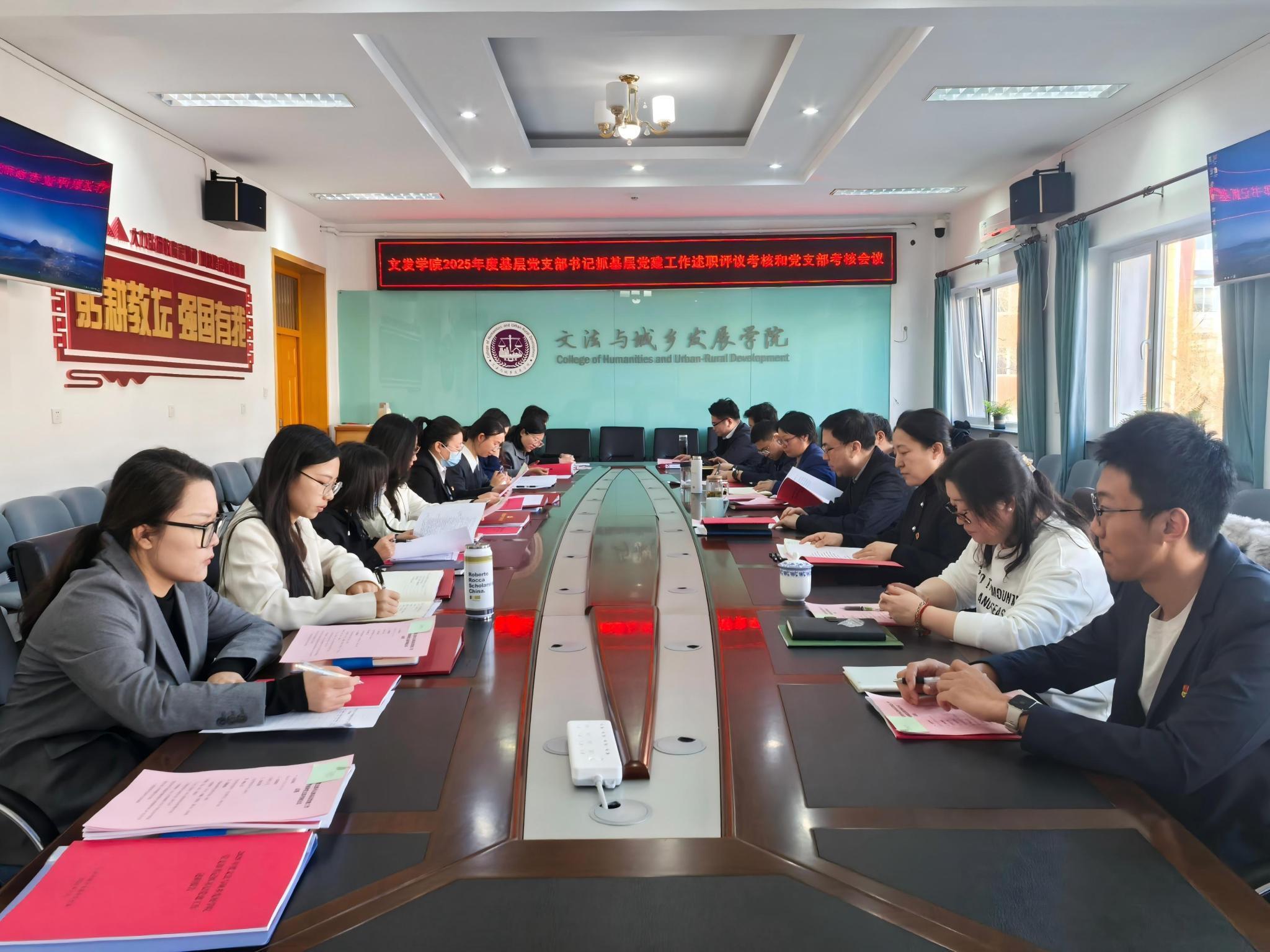 1月21日上午,文发学院召开2025年度党支部书记抓基层党建述职评议考核会。会议由文发学院党委书记赵和文主持。文发学院党委委员、基层党支部书记及师生党员代表参加会议,相关组织员列席指导。