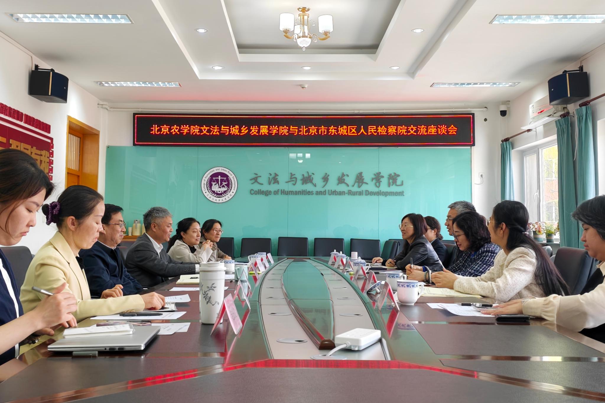 为进一步推动检校资源共享、优势互补、协同发展,实现合作共赢,4月3日,北京市东城区人民检察院与北京农学院文法与城乡发展学院开展交流座谈。北京市东城区人民检察院党组书记、检察长李华伟,党组成员、副检察长冯莹及检察院相关部门负责人;北京农学院党委常委、副院长张劲柏,文发学院党委书记赵和文,人事处副处长宋桂兰,文发学院法学系教师代表出席本次座谈会。座谈会由文发学院党委副书记、院长韩芳主持。