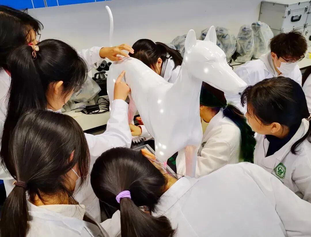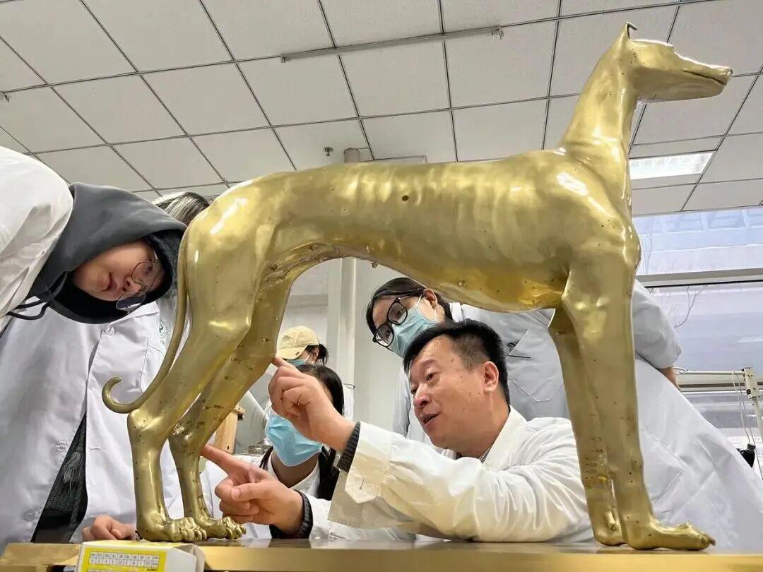 北京农学院动物医学专业学生率先在中兽医实操课用上了针灸铜犬、智能针灸犬等新教具。