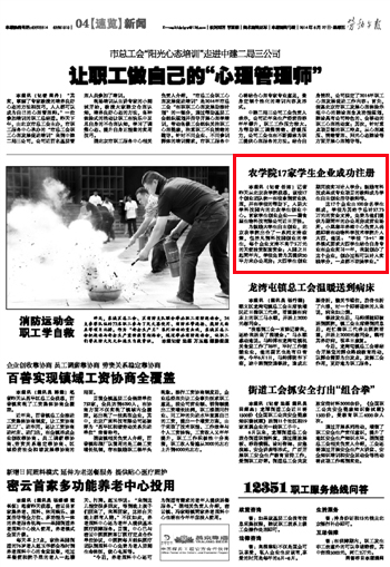 【劳动午报】农学院17家学生企业成功注册