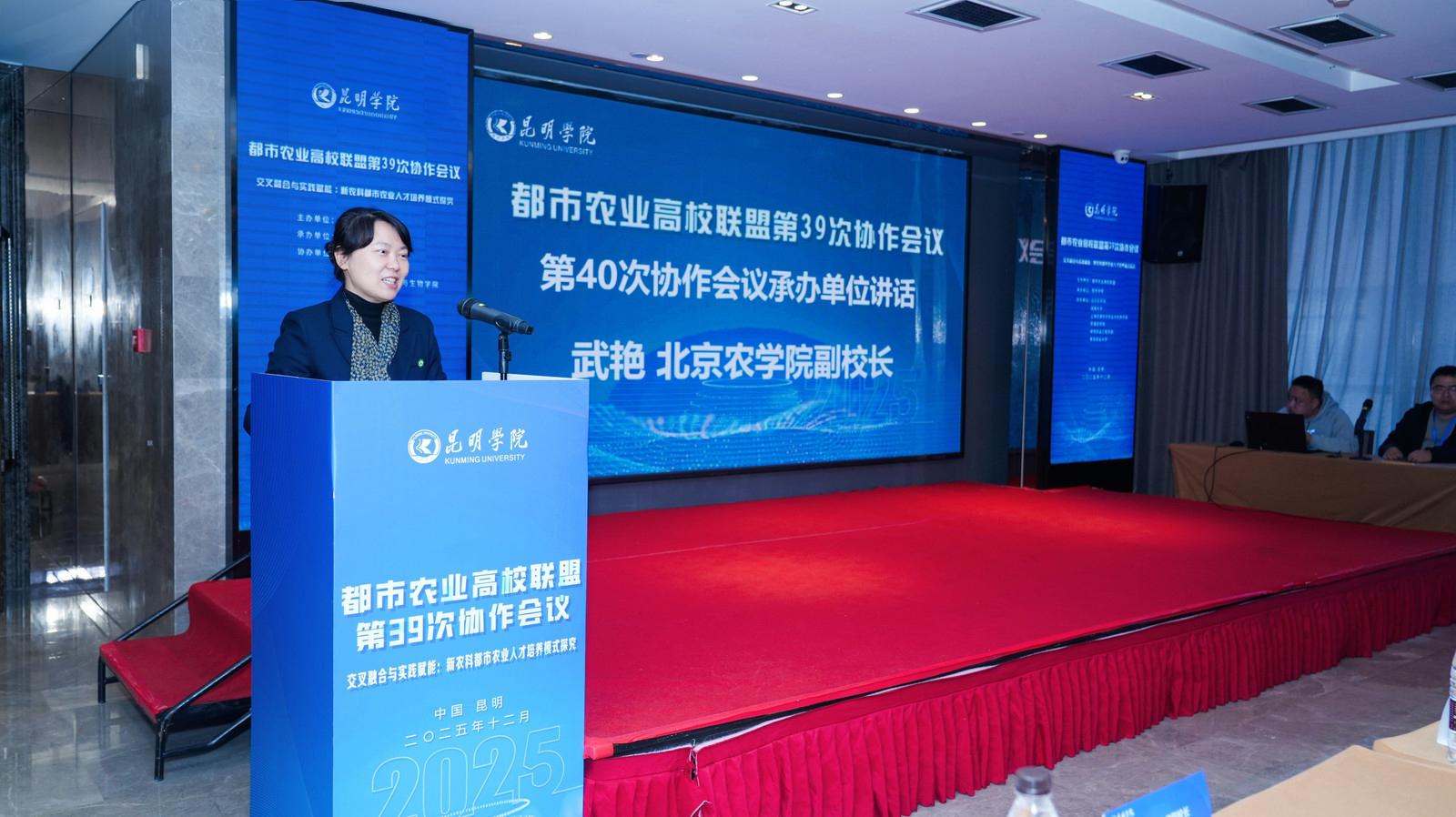 12月5日,都市农业高校联盟第39次协作会议在昆明召开。来自北京农学院、天津农学院、西南大学、仲恺农业工程学院、青岛农业大学、上海交通大学农业与生物学院等联盟成员单位代表齐聚一堂,通过专题报告、分组讨论等形式,围绕“新农科都市农业人才培养模式探究”进行深入交流研讨。我校党委常委、副院长武艳参会并以《新农科都市农业人才培养模式的北农实践》为题作报告。会议确定,都市农业高校联盟第40次协作会议将由北京农学院承办。