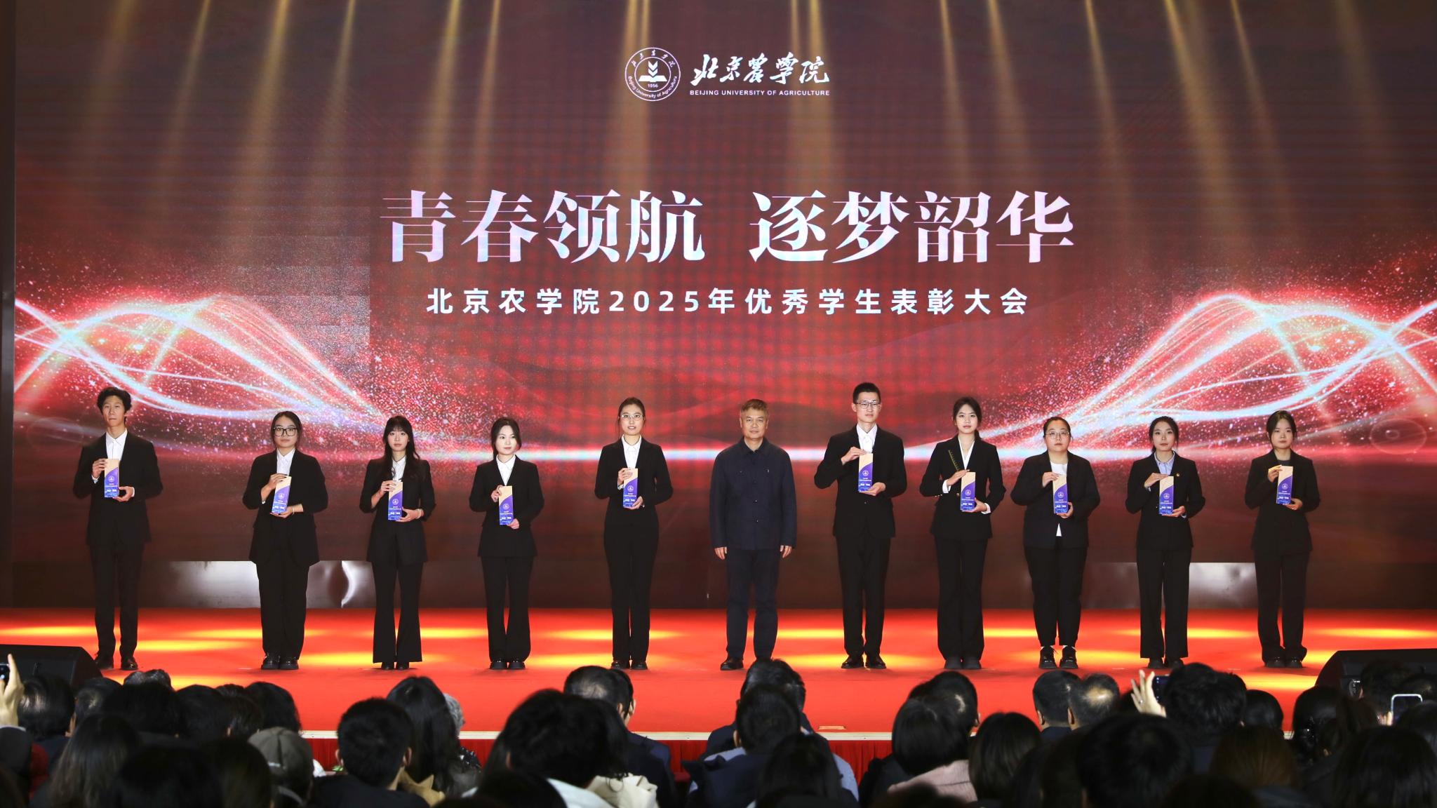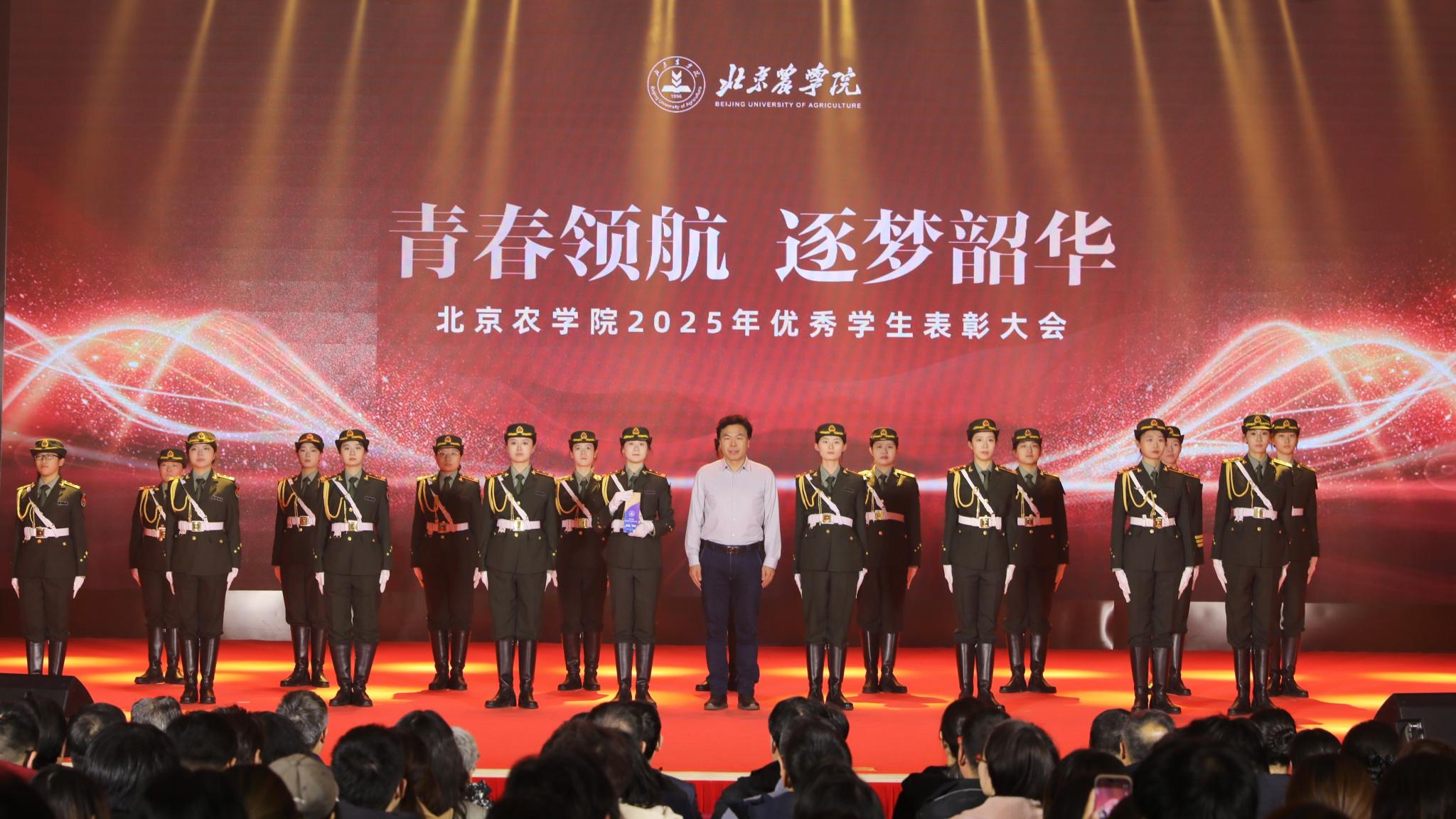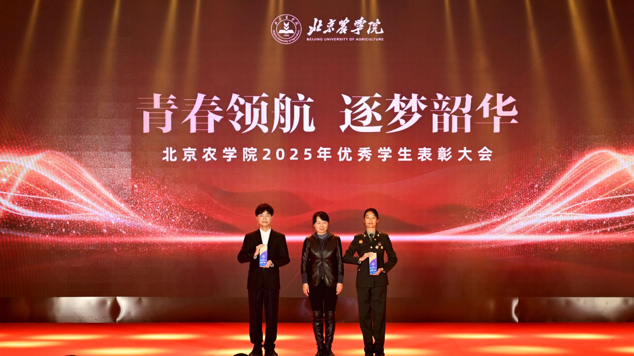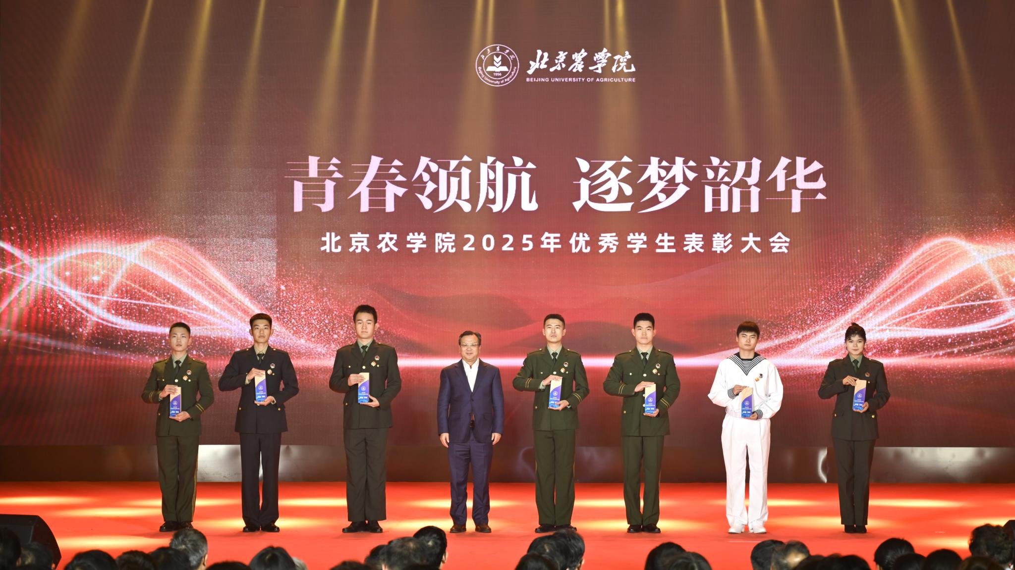 校领导分别为优秀毕业生代表、北京高校红色“1+1”示范活动获奖党支部、北京农学院国旗班、“四有”优秀士兵代表、纪念中国人民抗日战争暨世界反法西斯战争胜利80周年大会广场合唱团及民兵方队代表颁奖,表彰坚守信仰、爱国奉献的青春力量;为社会实践优秀团队与先进个人、心理健康类、体育类、文艺类获奖学生代表颁奖,表彰知行合一、全面发展的奋进榜样;为市级先进班集体、市级优秀学生干部、市级三好学生、国家奖学金获得者代表、“挑战杯”及各类科创竞赛获奖团队代表颁奖,表彰勤学善思、勇于创新的先进典型。