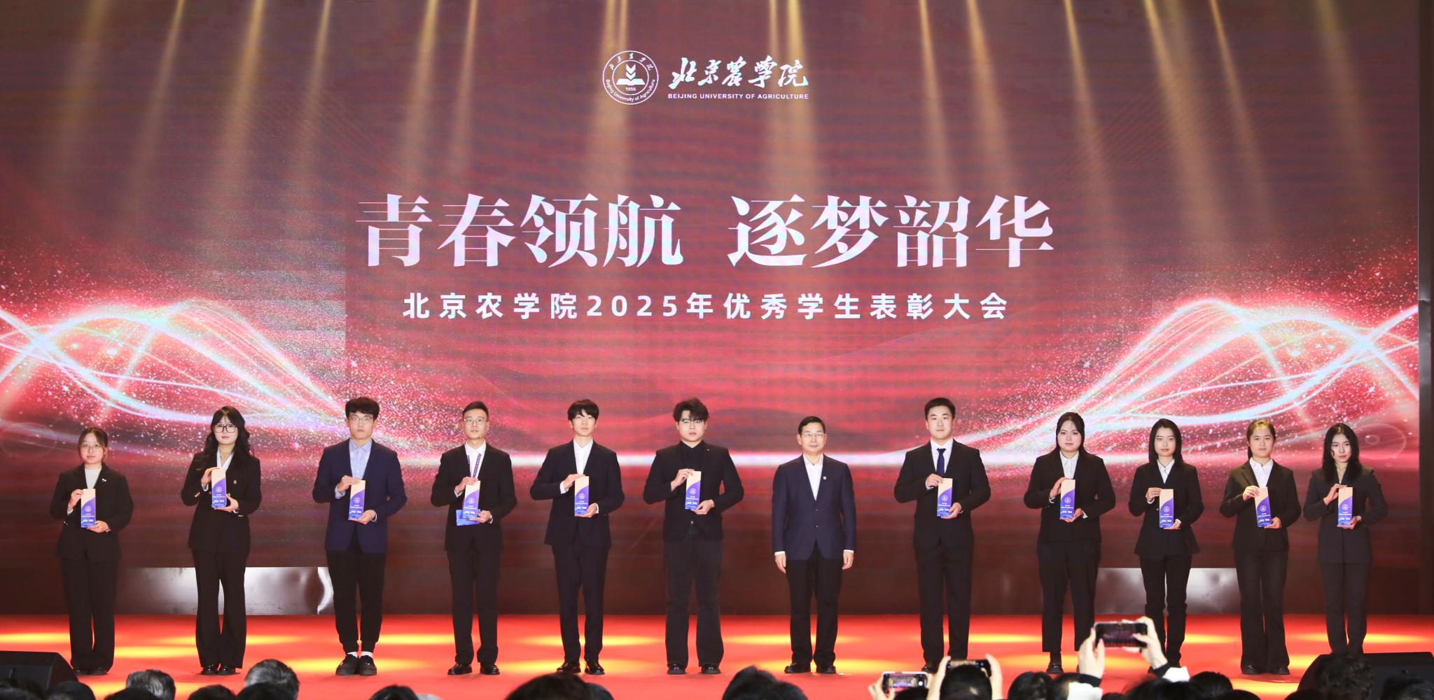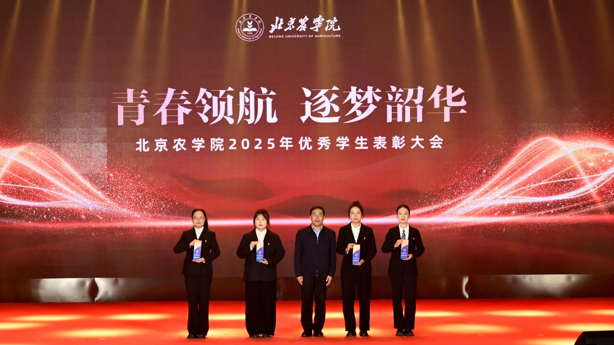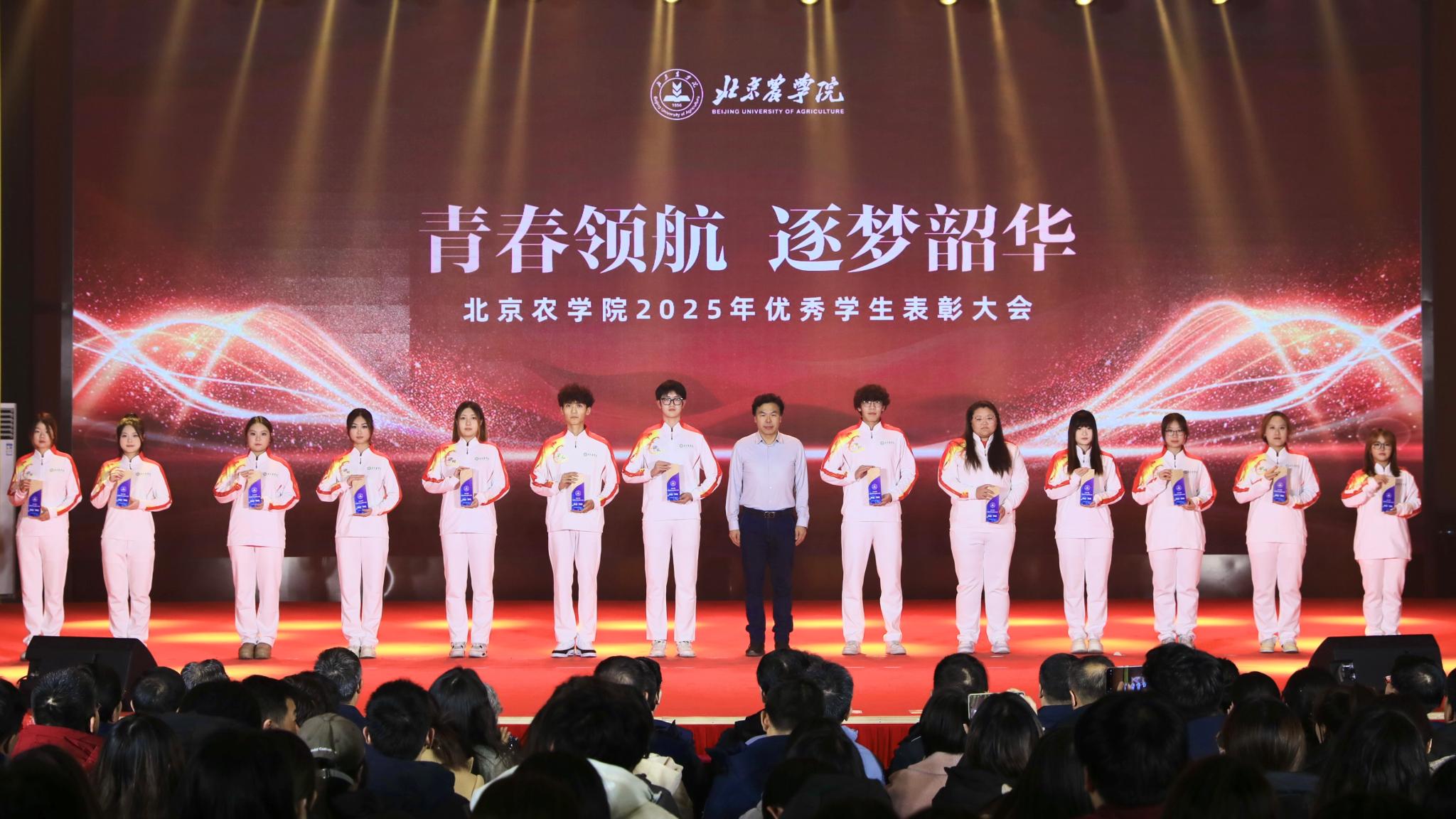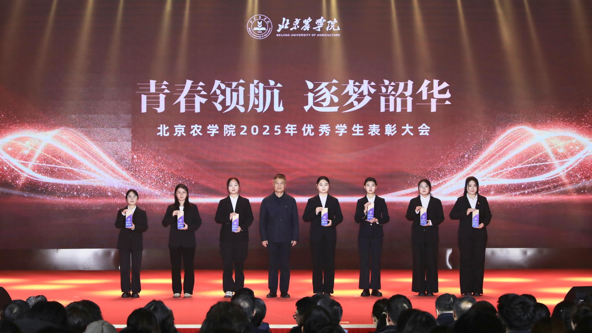 校领导分别为优秀毕业生代表、北京高校红色“1+1”示范活动获奖党支部、北京农学院国旗班、“四有”优秀士兵代表、纪念中国人民抗日战争暨世界反法西斯战争胜利80周年大会广场合唱团及民兵方队代表颁奖,表彰坚守信仰、爱国奉献的青春力量;为社会实践优秀团队与先进个人、心理健康类、体育类、文艺类获奖学生代表颁奖,表彰知行合一、全面发展的奋进榜样;为市级先进班集体、市级优秀学生干部、市级三好学生、国家奖学金获得者代表、“挑战杯”及各类科创竞赛获奖团队代表颁奖,表彰勤学善思、勇于创新的先进典型。