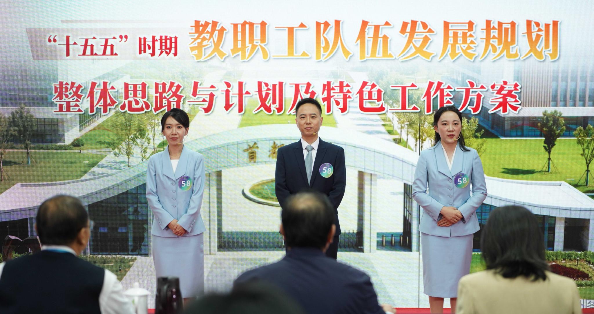高源、王岩和余晓濛3位老师经过校内青管赛选拔,组队代表学校参加北京高校青管赛。比赛现场,他们从容自信、配合默契,完成设计方案的现场展示,全方位展现了学校管理岗位青年教师的职业素养和昂扬向上的精神风貌。