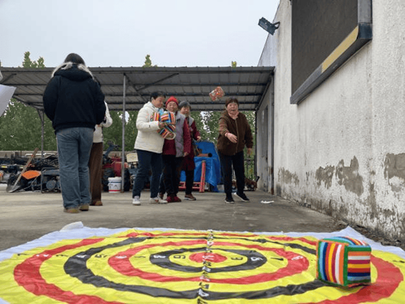 运动会围绕中老年村民需求,精心设置“沙包掷准”“投壶”“企鹅慢跑”等六大趣味项目,吸引80余名村民踊跃参与。赛场上,老人们精神矍铄、全情投入,学子们耐心引导、加油鼓劲,现场欢声笑语不断。