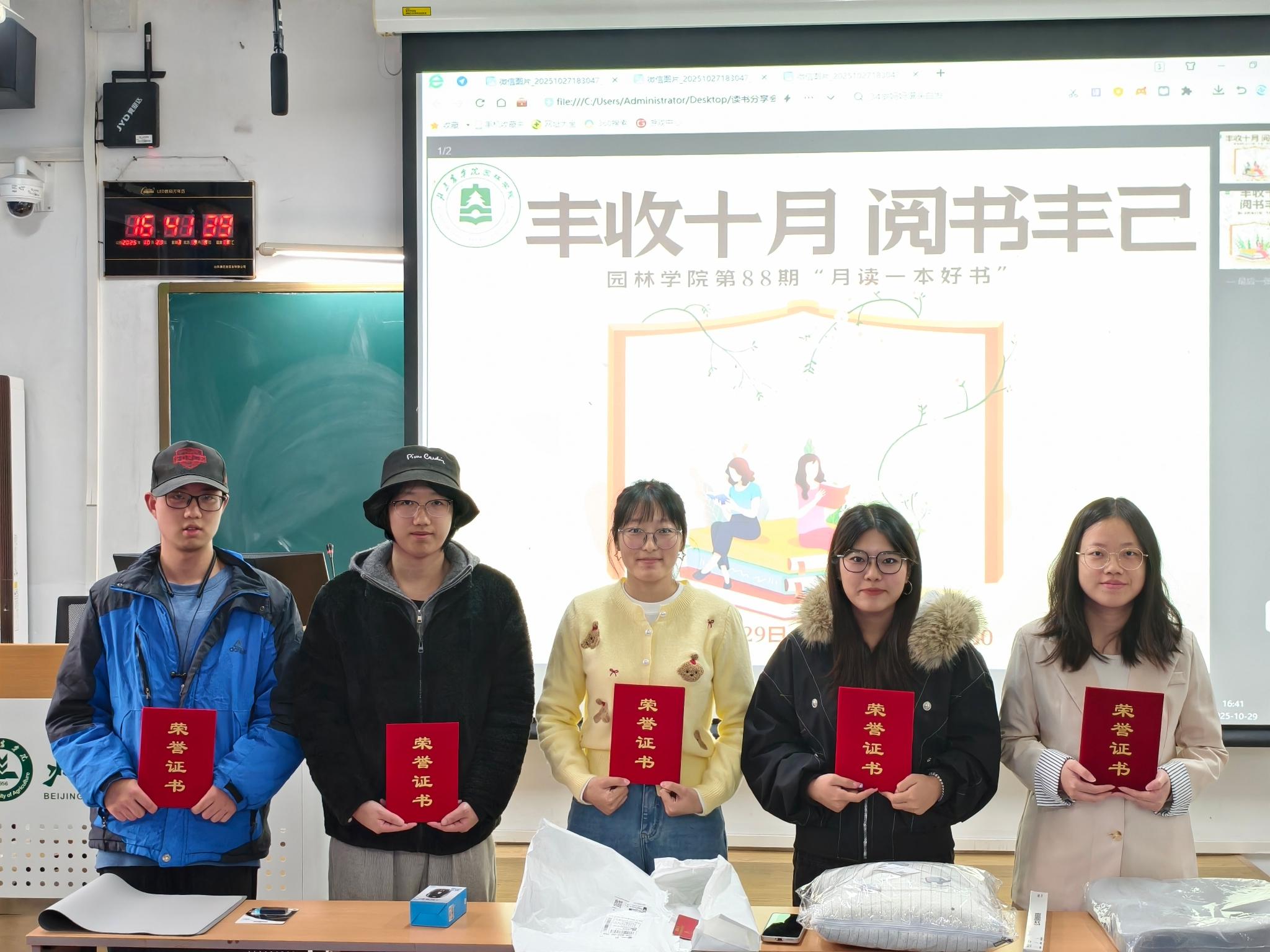 近日,园林学院第88期“月读一本好书”暨学风建设活动在教A 215顺利举行,本期的主题是“丰收十月阅书丰己”。霜降已至,正是一年丰收好时节。秋日暖阳晒得枫香红了脸,园林学院的研究生齐聚,分享着自己在书中的收获亦丰富着彼此的认知。活动由园林学院研究生学术部高万琴主持,大家围绕着书籍展开热烈的讨论,分享着自己的阅读感悟和心得,思维的火花在交流中不断碰撞。