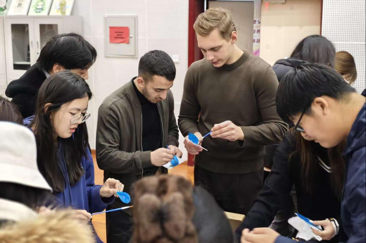 为深化“五早一晚”学风建设,丰富晚自习开展形式,国际学院举办“青年承新火 古艺暖冬韵”中华传统文化体验活动。活动邀请俄罗斯莫斯科法律大学正在北京农学院交流学习的12名留学生与国院学子共赴文化之约,将非遗实践与国际交流深度融合,为初冬校园注入跨文化活力,也为晚自习赋予沉浸式学习新内涵。