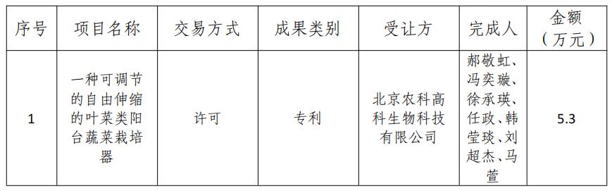 根据《中华人民共和国促进科技成果转化法》和《北京农学院促进科技成果转化管理办法(试行)》相关规定和要求,经科技成果开发工作委员会审核通过,现对拟转化科技成果进行公示,公示时间自2025年11月5日起至2025年11月20日。