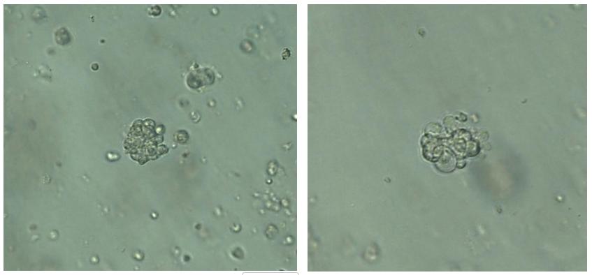 图1 本技术体系制备的牛胎盘类器官(左)与商品化试剂制备的胎盘类器官(右)