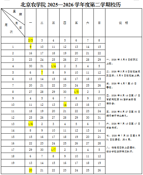 2025-2026学年度第二学期校历